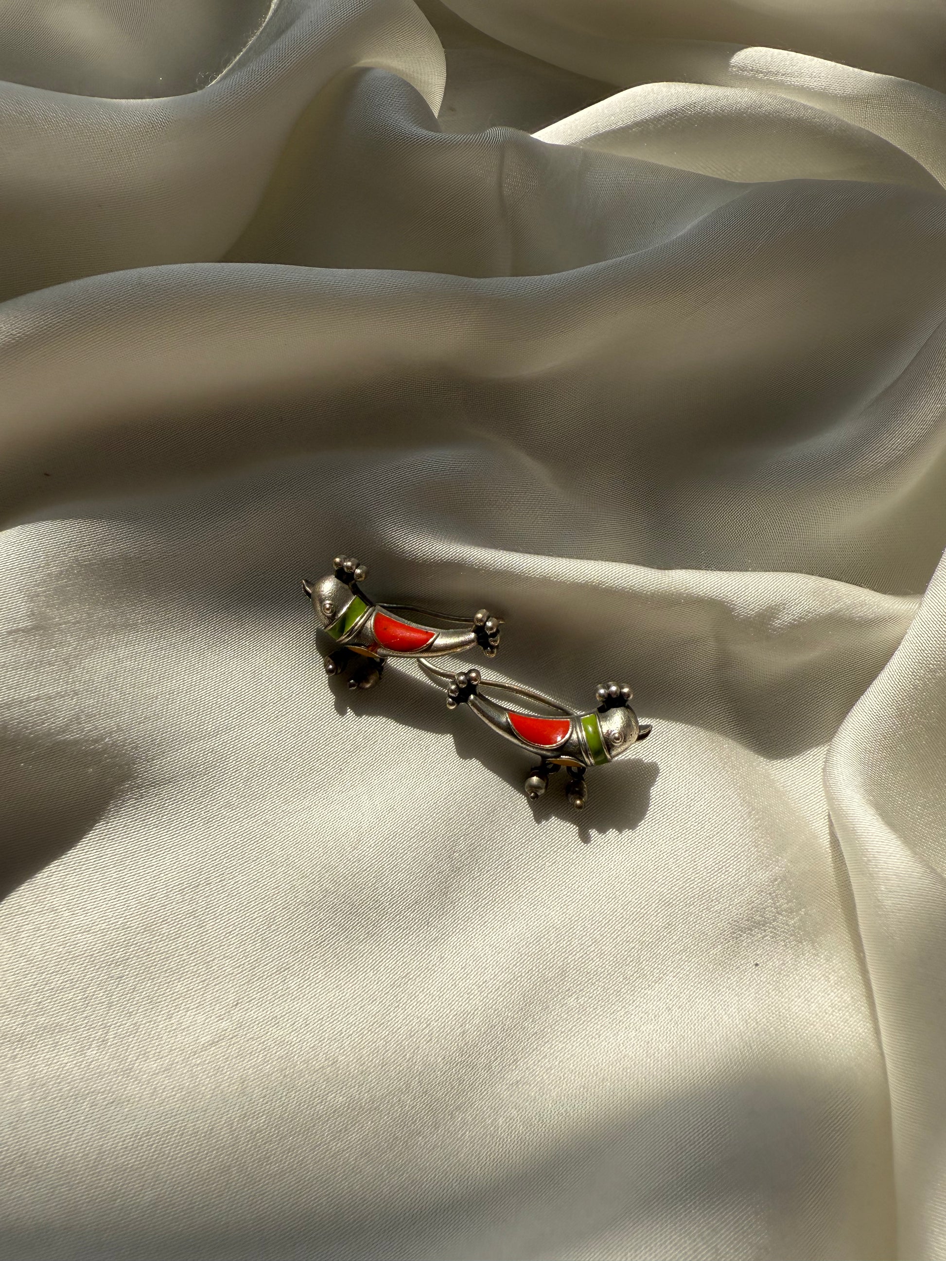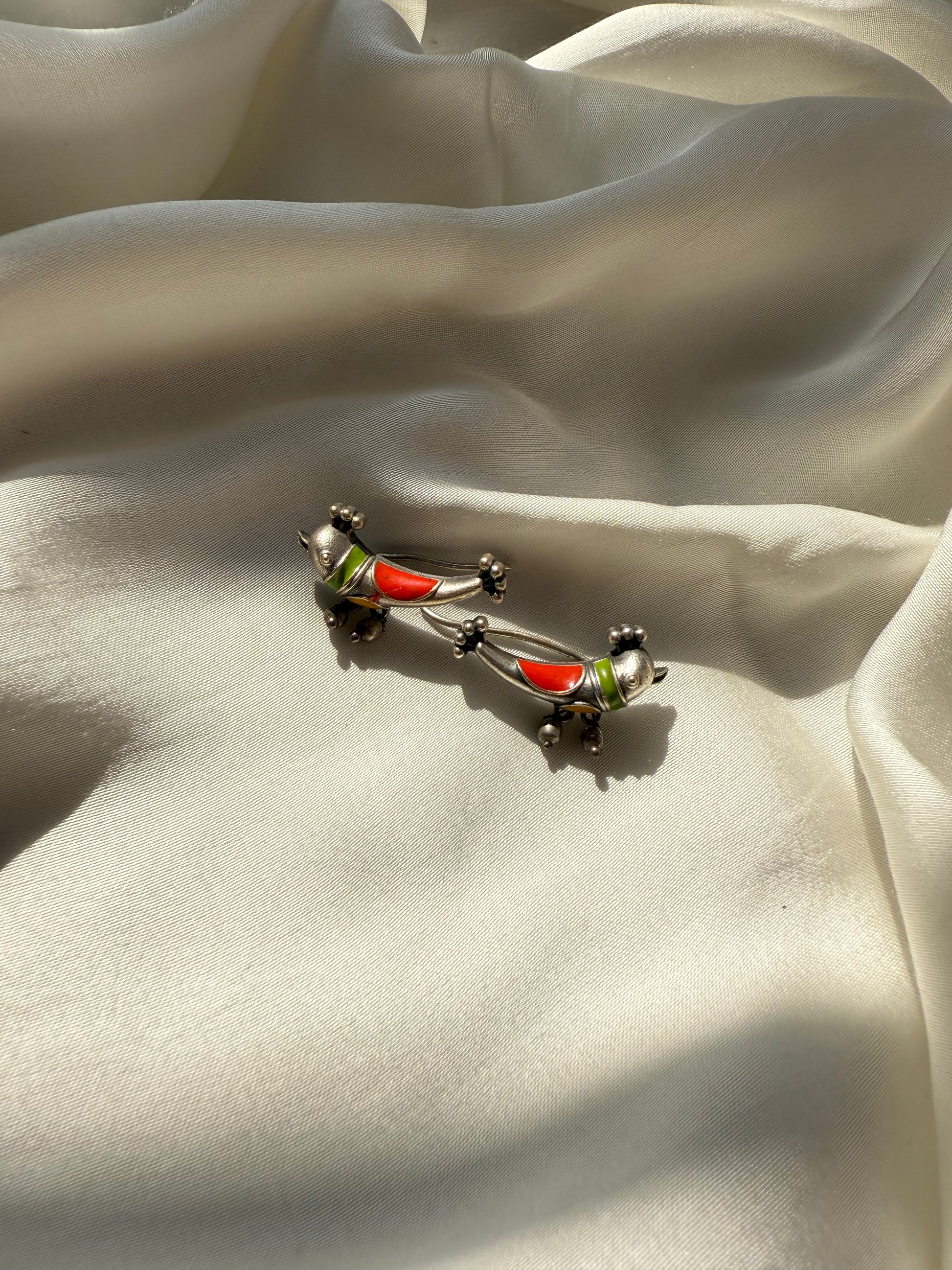 Celebrate nature's artistry with these statement oxidized silver drops. The design elegantly layers a detailed floral stud and a small bird figure above a dramatic, dense floral cluster. The uniform antique finish and intricate texturing give this pair a rich, heritage look perfect for tribal and earthy styling.